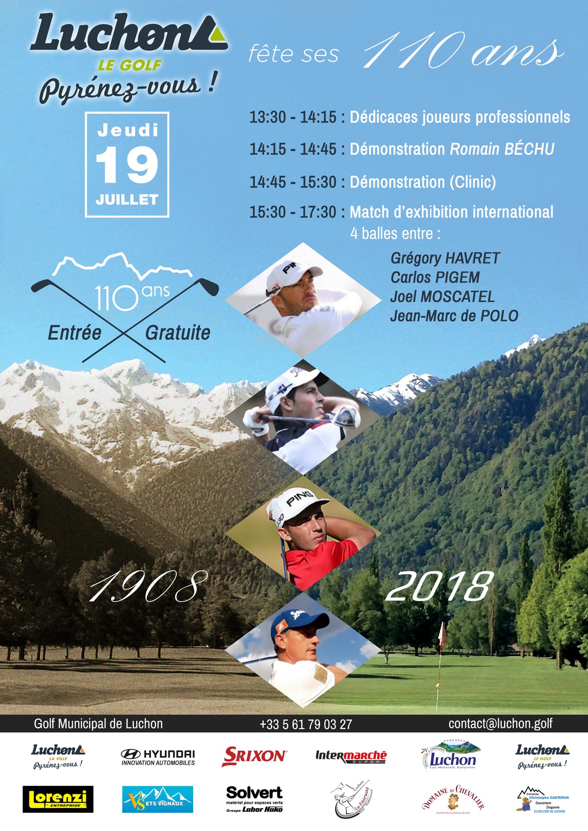 Voici le reportage photographique de la célébratiton des 110 ans du Golf Municipal de Luchon qui a eu lieu le jeudi 19 juillet 2018.
